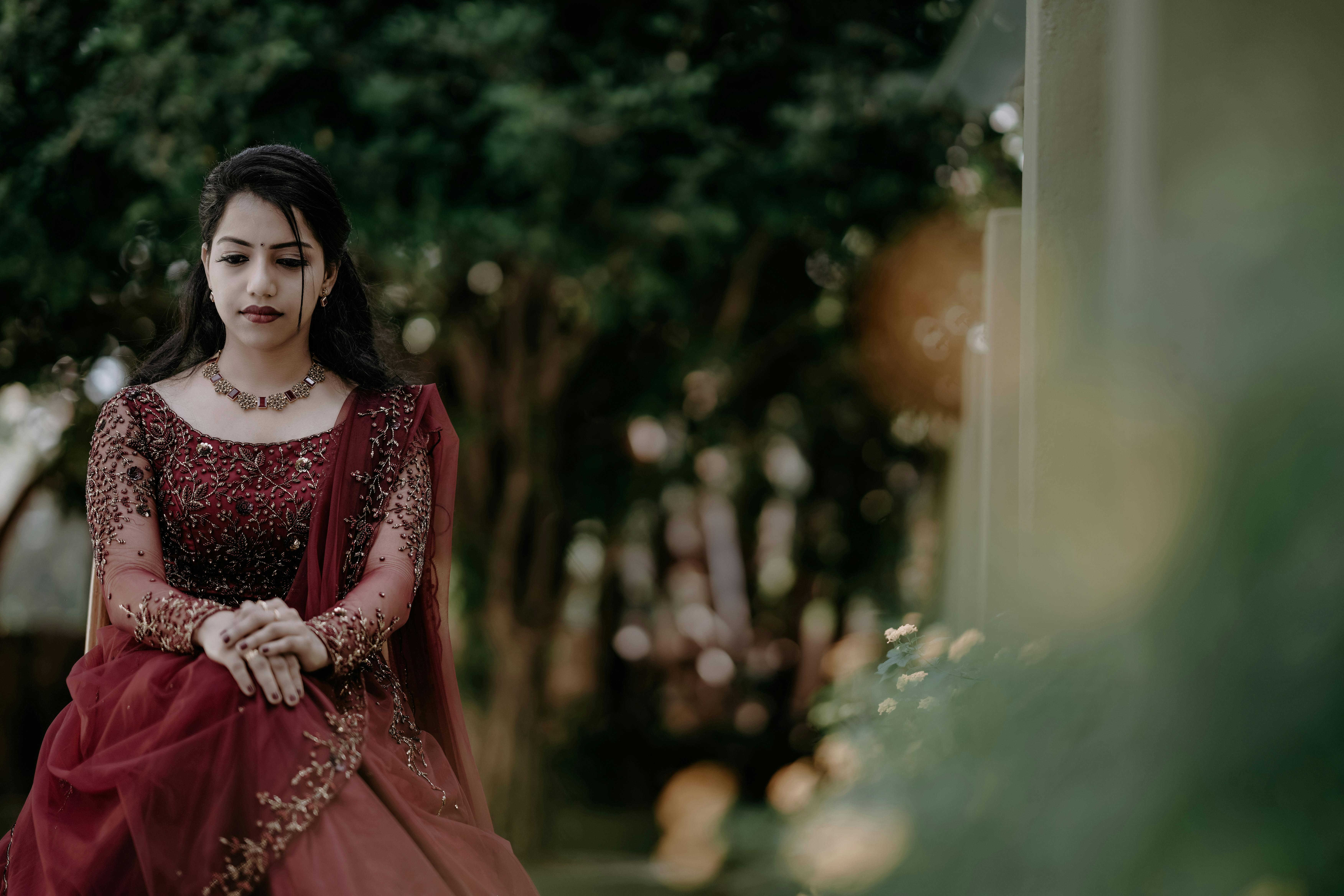 Woman in Traditional Wear With Red And Gold Dupatta